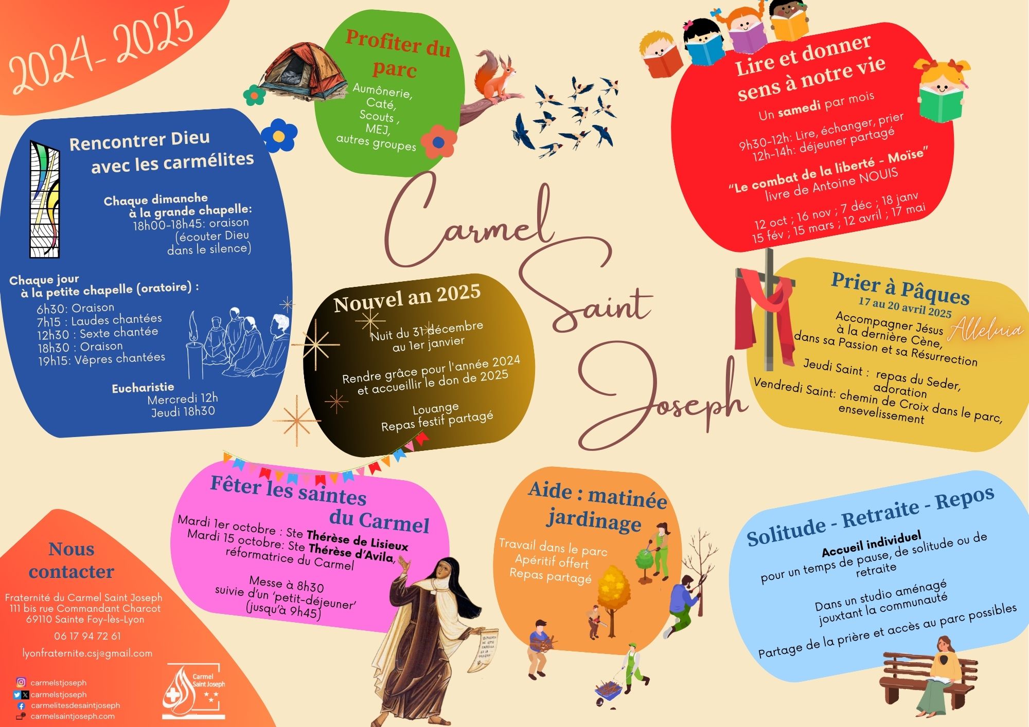 - proposent 8 rencontres de réflexion, partage, échange autour du livre de Antoine Nouis "Le combat de la liberté - Moïse" et de la Parole de Dieu ("lire et donner sens à notre vie" - samedis du Carmel)
